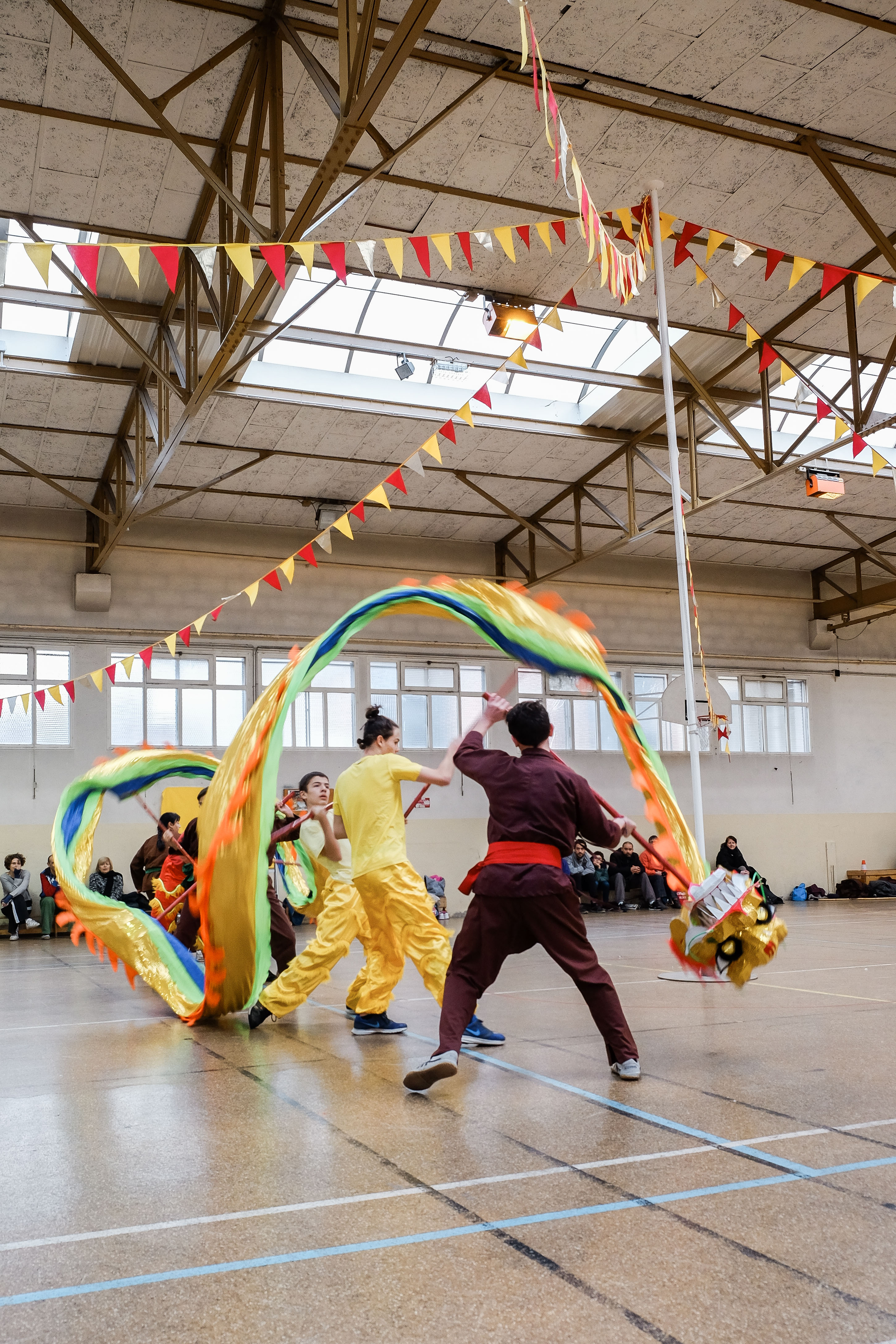 Nous remercions tous les participants, nos professeurs Florence Choffrut et Annick Le Verre, Ivan qui a réalisé l’affiche, les personnes qui ont participé à la décoration de la salle, Linda qui a accepté le défi de transformer le gymnase en un lieu festif avec fanions et kakemonos colorés décorés du logo de notre section et sa « Coquette », à Eric pour son aide précieuse à l’installation, à Jean-François qui nous a bluffé avec ses dégustations de thés, à la section Vothuat qui nous a enchanté avec ses danses du dragon et de la licorne et à notre photographe préféré, Sébastien, qui a réalisé de belles photos de l’évènement.